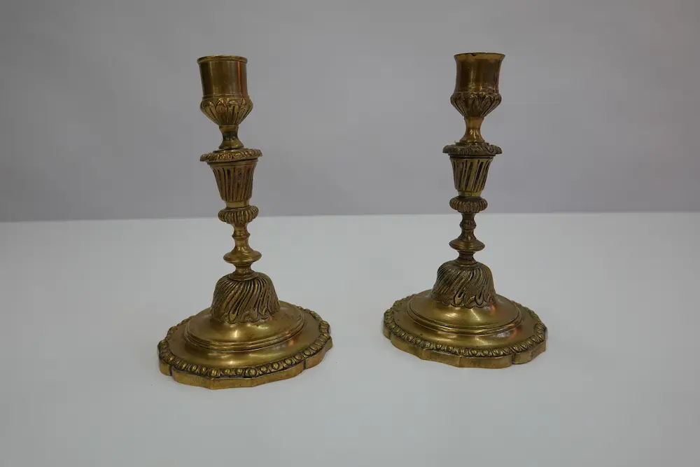 Paar antike Kerzenleuchter aus massivem Messing
