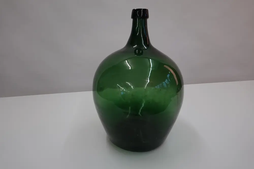 Antike Glasflasche / Weinballon aus grünem Glas