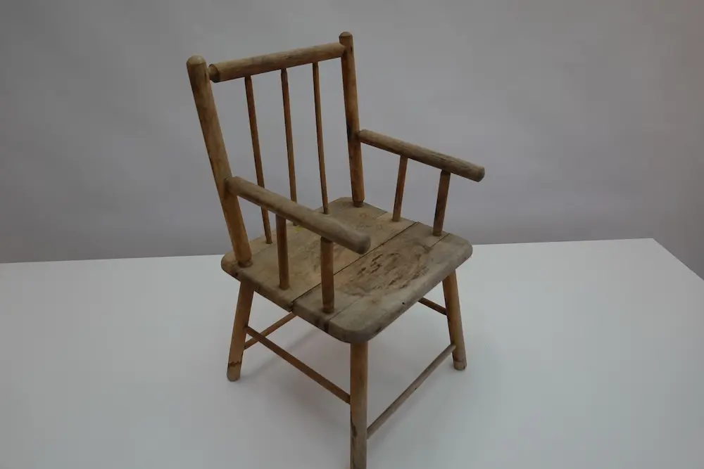 Alter Holz-Kinderstuhl mit Armlehnen