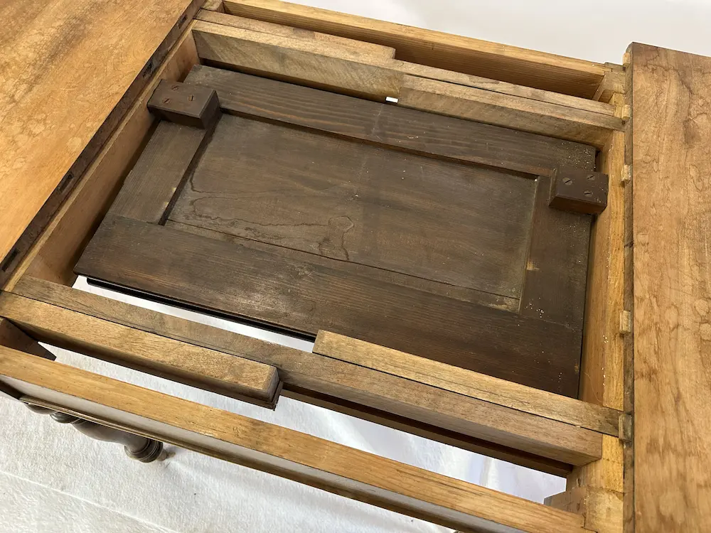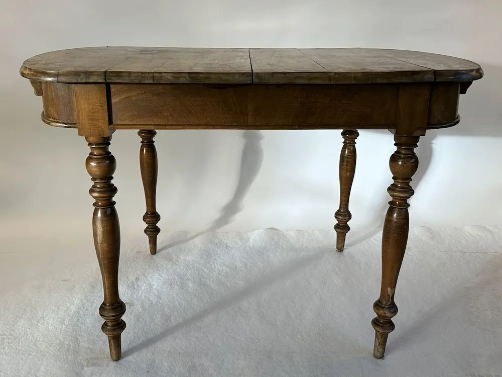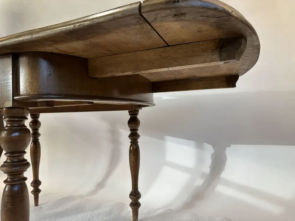 Antiker Holztisch ausziehbar mit Ansteckplatten – gedrechselte Beine